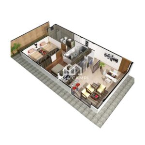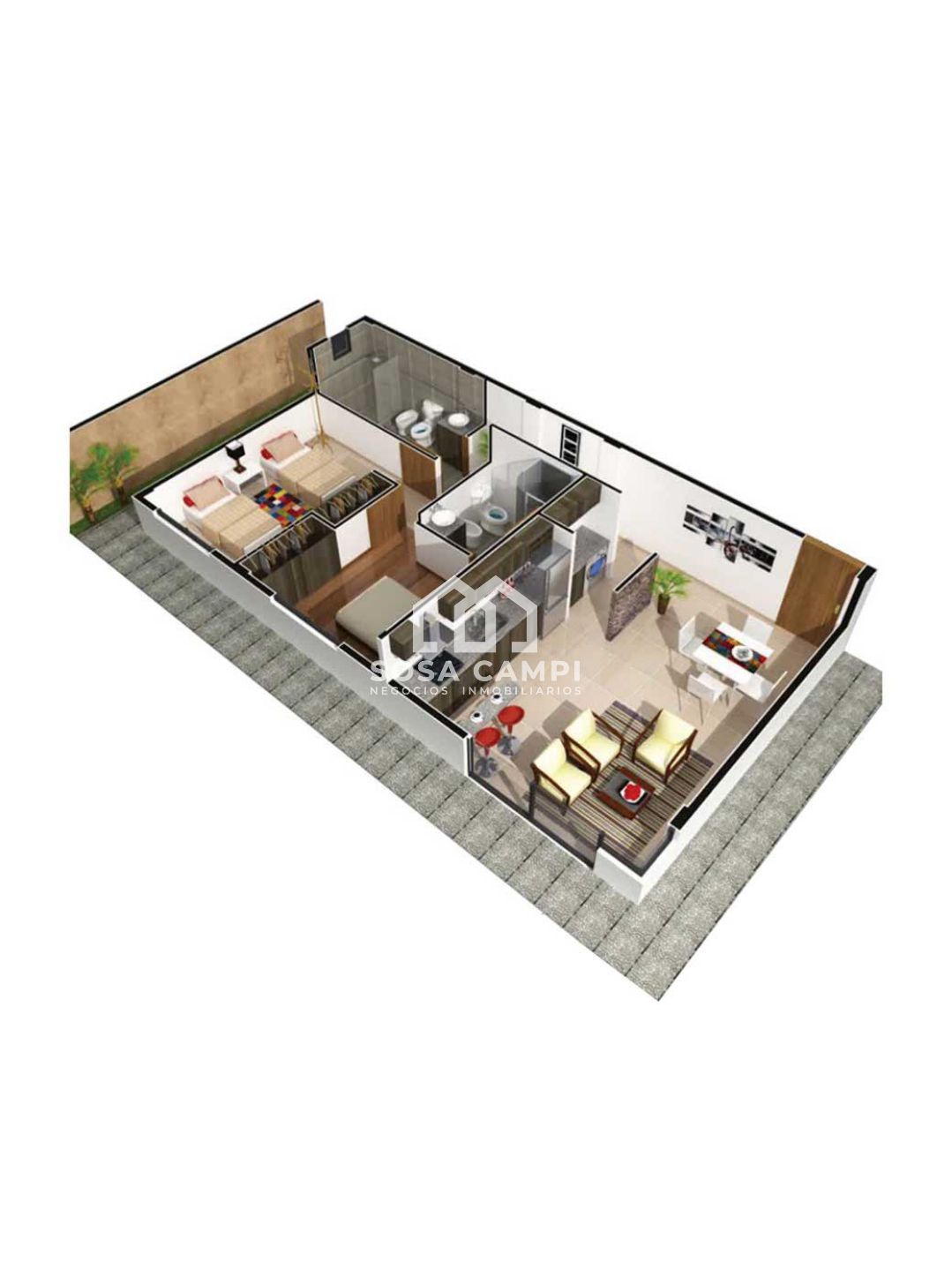 – Living, cocina y comedor integrados