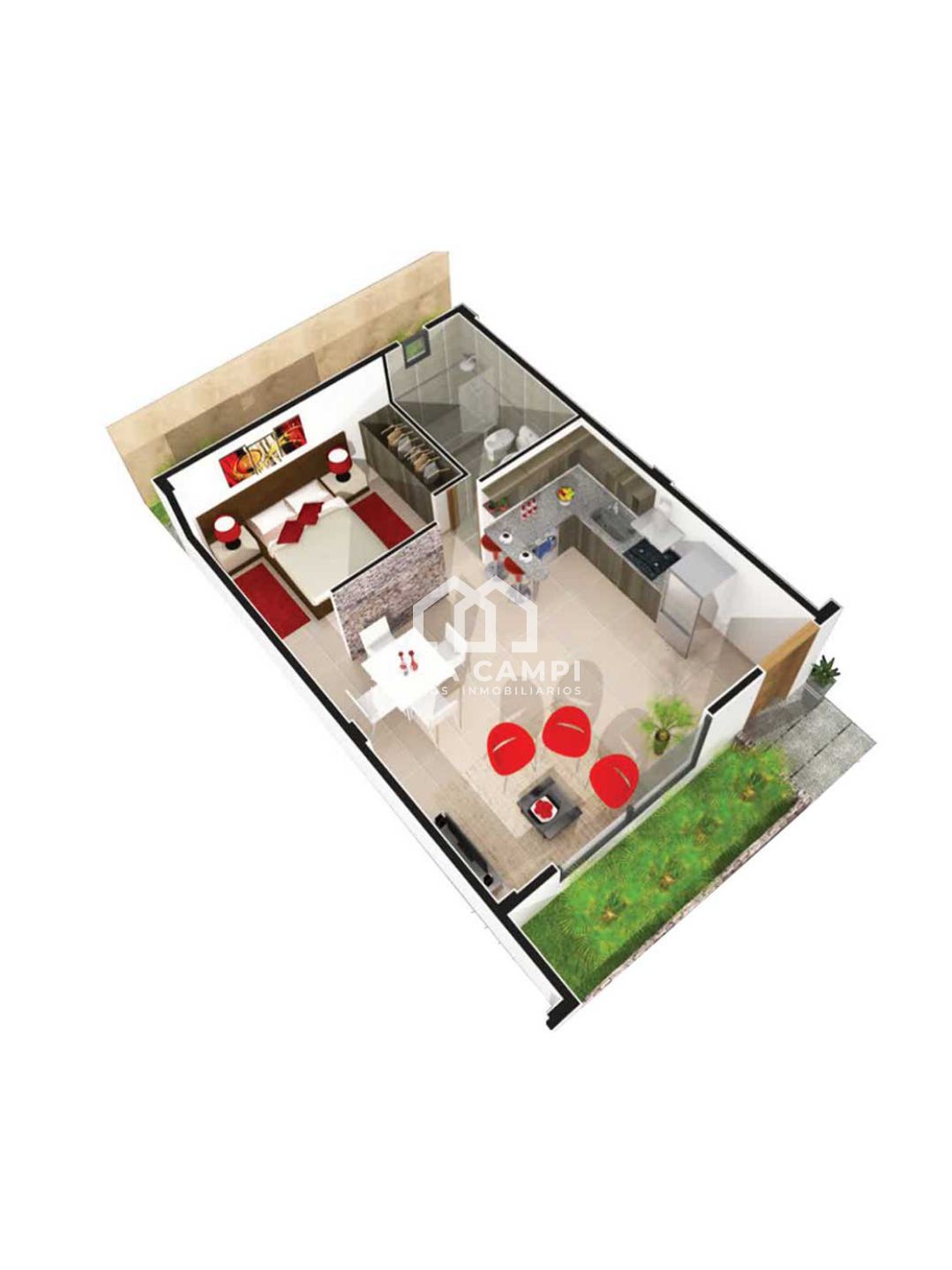 – Monoambiente (living-comedor-cocina integrados)